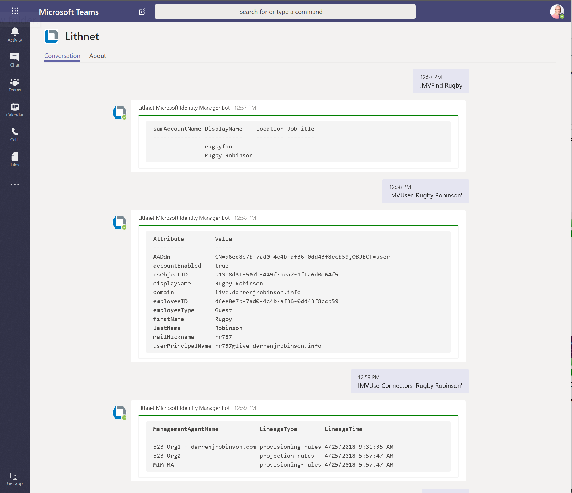 You could therefore think of ChatOps for Microsoft Identity Manager as a chat version of my Voice Assistant for Microsoft Identity Manager. But without the requirement of an IoT Mic Array, thereby making it more accessible and practical.