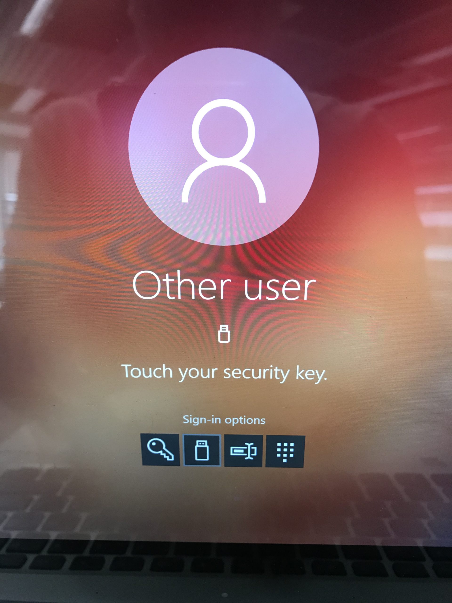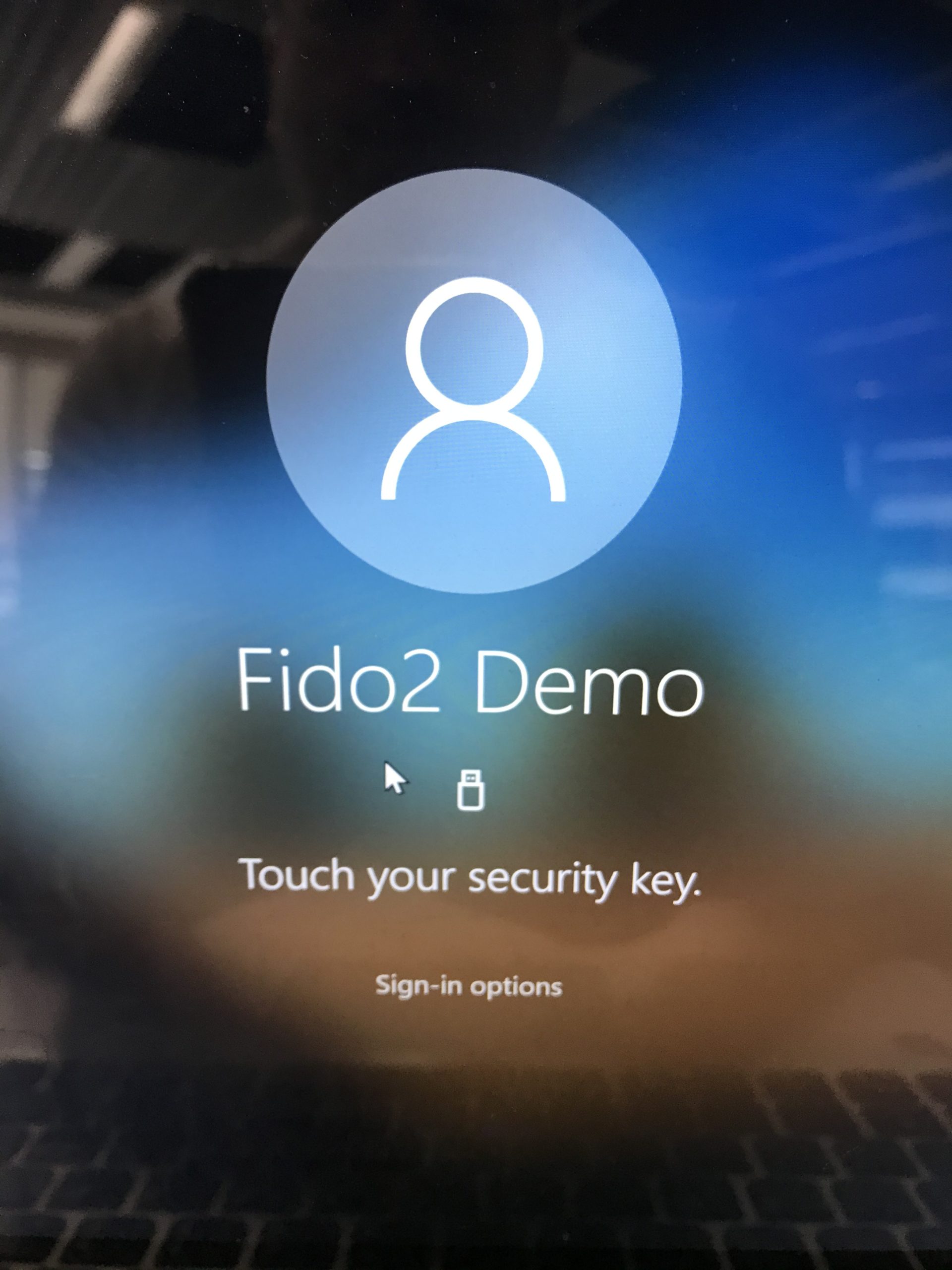 This process will differ slightly depending on the type of FIDO2 security key you have. The left column shows the user experience with a bio-metric token. Authenticating to Azure AD requires inserting the token and passing the bio-metric scan. The right column shows a non-bio key whereby a PIN is used to validate the owner of the key and then a tactile touch of the key completes authentication and login to Windows 10 via Azure AD proceeds.