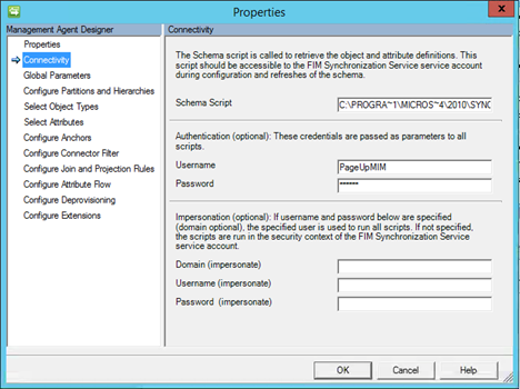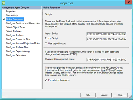 The path to the scripts in the PS MA Config must not contain spaces and be in old-skool 8.3 format. I’ve chosen to store my scripts in an appropriately named subdirectory under the MIM Extensions directory. Tip: from a command shell use dir /x to get the 8.3 directory format name. Mine looks like C:\PROGRA~1\MICROS~4\2010\SYNCHR~1\EXTENS~2\PageUp