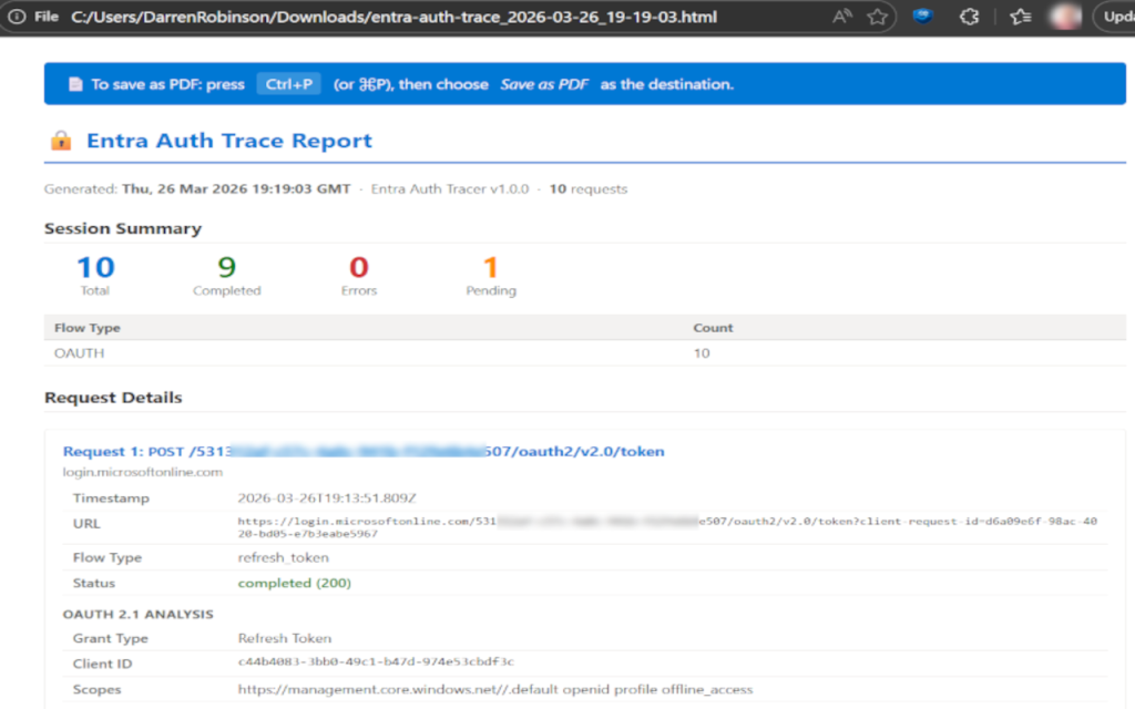 Entra Auth Tracer is a free, open-source Chromium-based browser extension that performs real-time, in-browser inspection of authentication and identity traffic. It is available now on GitHub and will be listed on the Chrome Web Store and Microsoft Edge Add-ons Store.