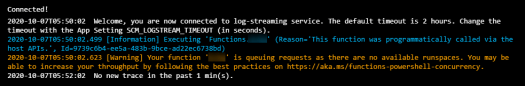“Azure PowerShell Function is queuing requests as there are no available runspaces”.