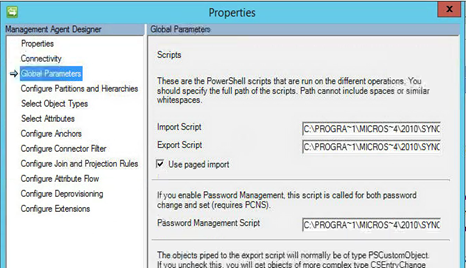 As per the tips above, the format for the script paths must be without spaces etc. I’m using 8.3 format and I’m using the same service account as my AD MA.