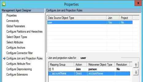 My join rule is simple. AccountName (which as you’ll see in the Import.ps1 is aligned with sAMAccountName) to AccountName in the MetaVerse.