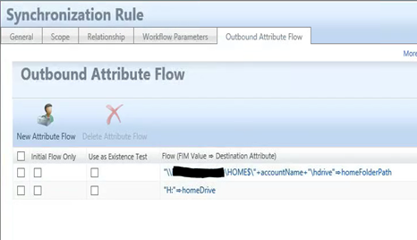 My Home Directory Outbound Sync rule doesn’t need to be very complex. All it is doing is sync’ing out the Home Directory Drive Letter and Home Directory Path attributes.