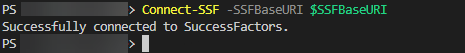 Running the Connect-SSF function (after configuring the SSFBaseURI variable) will prompt you for your SuccessFactors API credentials. It then does a test connection to verify access.