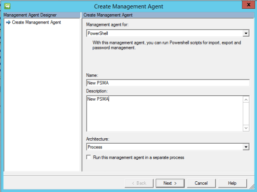 Using the Microsoft Identity Manager Synchronization Server Manager, from the Management Agents section select Create. Choose PowerShell.