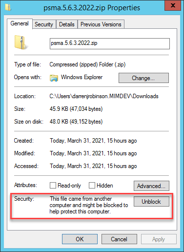 - Download the psma.5.6.3.2022.zip file from GitHub here. Unblock the zip file and expand the archive on your FIM/MIM Synchronization Server.