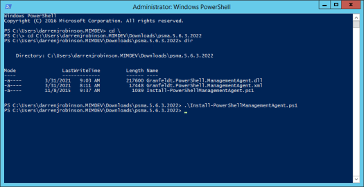 Installing v5.6.3.2022 of the PowerShell Management Agent