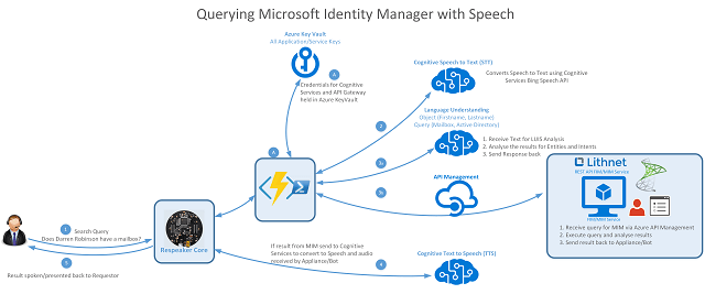 Yes, you’ve read the title correctly. Speaking to Microsoft Identity Manager. The concept behind this was born off the back of some other work I was doing with Microsoft Cognitive Services. I figured it shouldn’t be that difficult if I just break down the concept into individual elements of functionality and put together a proof of concept to validate the idea. That’s what I did and this is the first post of the solution as an overview.